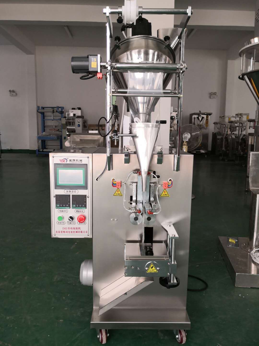 连续式粉剂包装机用于不易流动的粉类物料的小袋包装 (如:奶粉、豆奶粉、淀粉、药品粉剂类、农药粉剂类、咖啡粉、调味粉等)。包装成品的形状为三边或四边封合的扁平袋。(注:三边封合形状为常规产品,四边封合形状需特殊定制热封器体)生产材料全部选用不锈钢制成,与物料接触部位采用的是304不锈钢,完全符合医药GMP、QS要求,本机控制采用液晶控制面板更易于调控于操作。