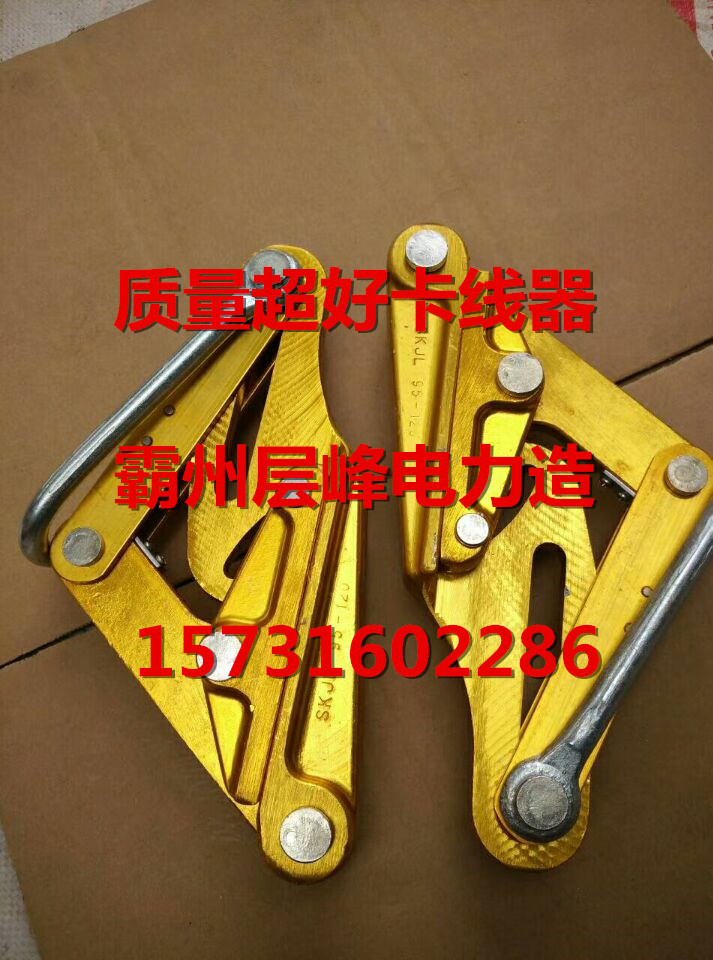 导线卡线器主要材质为铝合金,一些特殊规格要求比较高,这时候会使用到优质的镁铝合金材质,这样保证卡线器的柔韧性,另外在线路施工时需要使用到机动绞磨机,放线滑轮,铝合金紧线器,齿轮式断线钳,机械打孔机,手扳葫芦,铝合金三角抱杆,铝合金立杆机,电线杆运杆车,电缆剥线钳,液压式电缆放线架等等。1T2T3T卡线器参数 导线卡线器报价及厂家。