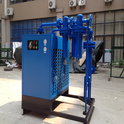 冷冻式压缩空气干燥机 ( 简称防爆冷干机 ) 是根据冷冻除湿原理,将压缩空气强制冷却到要求的露点温度以下, 从而将其中所含的大量水蒸气,油雾冷凝成液滴 , 通过气液分离,由排水器排出机外,使压缩空气干燥的一种新型设备 , 经防爆冷干机处理后的压缩空气 (7kgf/cm 2下 ) ,其干燥度可以达到大气 -23 ℃左右。