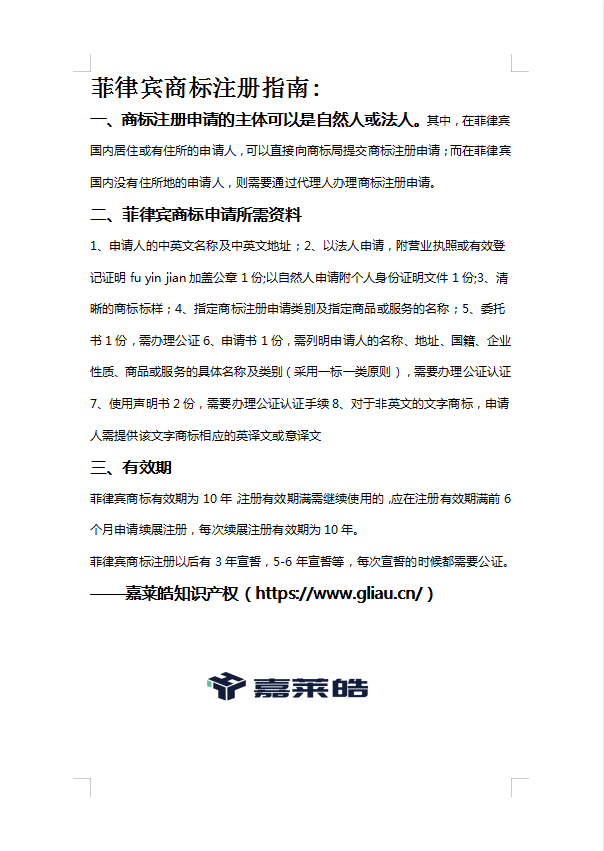 菲律宾商标注册以后有3年宣誓,5-6年宣誓等,每次宣誓的时候都需要公证。——嘉莱皓知识产权