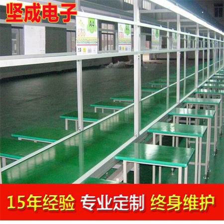 输送流水线又称为装配线,一种工业上的生产方式,指每个一个生产单位只专注处理某一个片段的工作,以提高工作效率及产量;按照流水线的输送方式大体可以分为:皮带流水装配线、板链线、倍速链、插件线、网带线、悬挂线及滚筒流水线这七类流水线。一般包括牵引件、承载构件、驱动装置、涨紧装置、改向装置和支承件等组成。