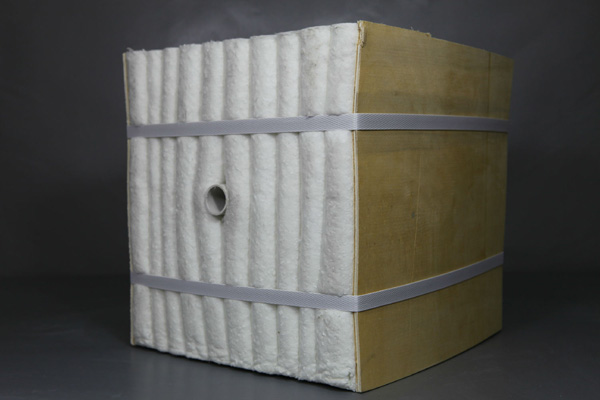 按成型方法不同,陶瓷纤维模块可以分为折叠块、切片块、派洛块、真空成型块。由于多晶莫来石纤维制作方法及晶向结构不同,其纤维长度较短且柔软性差。无法制作成大模块,导致多晶纤维无法大规模应用。现在多晶纤维多使用在浇注料或耐火砖炉墙、炉顶内表面贴块,使用多晶纤维贴块可有效降低炉外壁温度同时减少炉墙蓄热损失。
