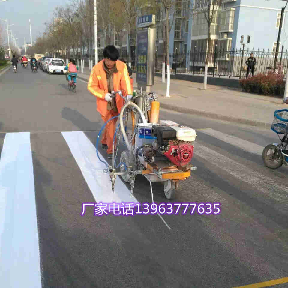汽油马达大流量马路冷喷划线喷涂机:可用于厂房划线、公路和小区停车位划线、驾校划线、操场划线、斑马线等。处理乳胶漆、道路标线油漆(丙烯酸)等。