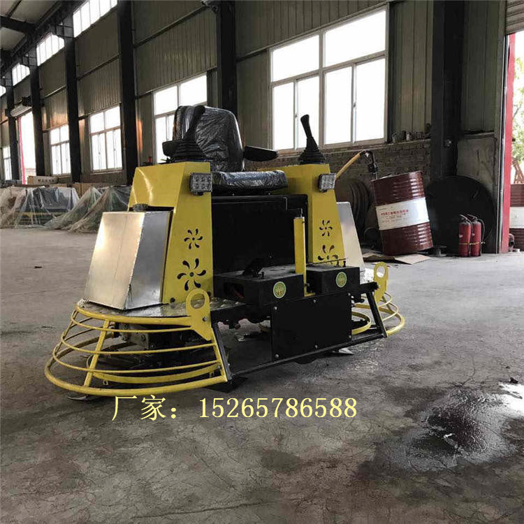 山东金尊机械倾情打造 座驾式混凝土抹光机 ,不断升级,目前这款zui 新式双盘抹光机,加大了减速机,四叶抹光机采用直联涡轮减速机传递动力,具有减速比大、效率更高。本机结构为:电动、汽油机经三角皮带传动涡轮箱,从而带动抹片旋转而达到抹平。涡轮传动具有传动扭矩大、耐用、平稳、转速均匀等优点。整机结构更为紧凑,使用起来感觉会更省力,人连续工作好几个小时也不会觉得疲劳。劳动强度降低了效率就上去了,明显高于手扶抺平机。双刀盘结构,重量大,对地面具有更好的压实效果,有利用地面提浆抹平。