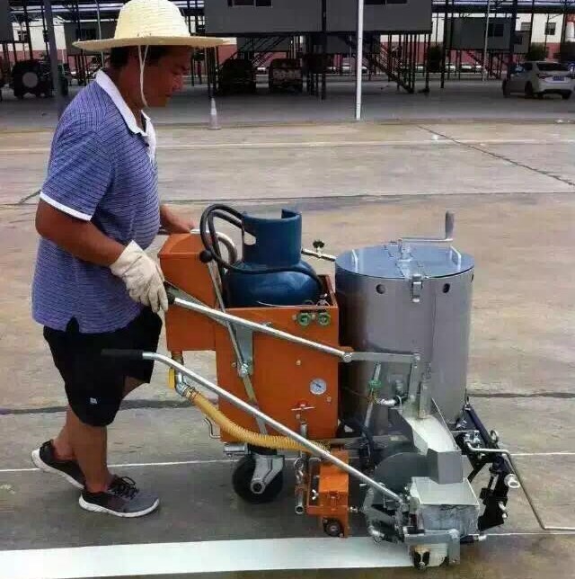 小型热熔式标线机是一种中国较普遍使用的简易型手推(扶)式标线设备。它具有投资少、重量轻、易装运、易操作、好维护等优势,适用各型公路、停车场、学校、工厂等场所热熔标线作业。金尊手推式热熔划线机施工时,将涂料投入划线机的保温熔融涂料箱中,之后在将溶融或液体涂料引入划线斗中,并且进行保温使物料保持熔融或流动状态。