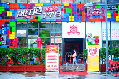 1、品牌形象:青红造了个白麻辣烫全国统一形象优势,统一店面形象设计,可以利用正面的品牌形象。