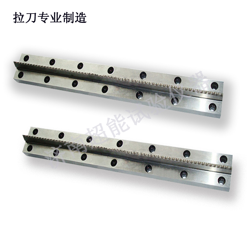 超能冲击试样缺口高硬拉刀采用特殊材质,特殊工艺精密加工制造,硬度高,耐磨性好,使用寿命长,每把拉刀可加工试样达20,000多个。拉刀共54个齿(深度5mm缺口拉刀为74个齿),每个齿相差4丝,缺口精度高,加工出的V型缺口或U型缺口符合GB/T229-2007《金属材料夏比缺口冲击试验方法》、GB 2106-80《金属夏比(V型缺口)冲击试验方法》及ASTM E23-02a《金属材料缺口试样标准冲击试验方法》、ISO148等国内外标准的要求。