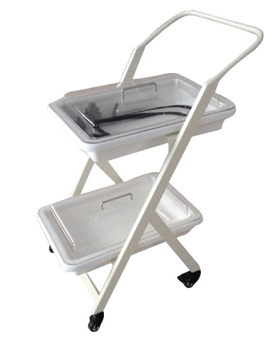 内窥镜转运车采用二层,三层独立式设计,周转盘材料是由高分子复合材料独立开模制成的,车体由钢体喷塑而成。所以内窥镜转运车具有耐腐蚀,不沾水,车行顺畅,取放方便等优点。盘内内镜存放导航隔条使污染部位和非污染的内镜分层表时后置放,有效避免交叉感染。