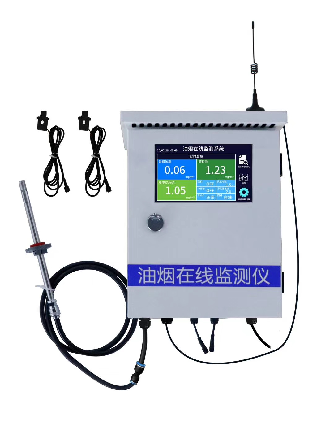 n 1路GPRS(可选4G)通信接口赠送1年物联卡,数据可直接上传我司提供的免费云平台、政府油烟监控平台或客户的平台。