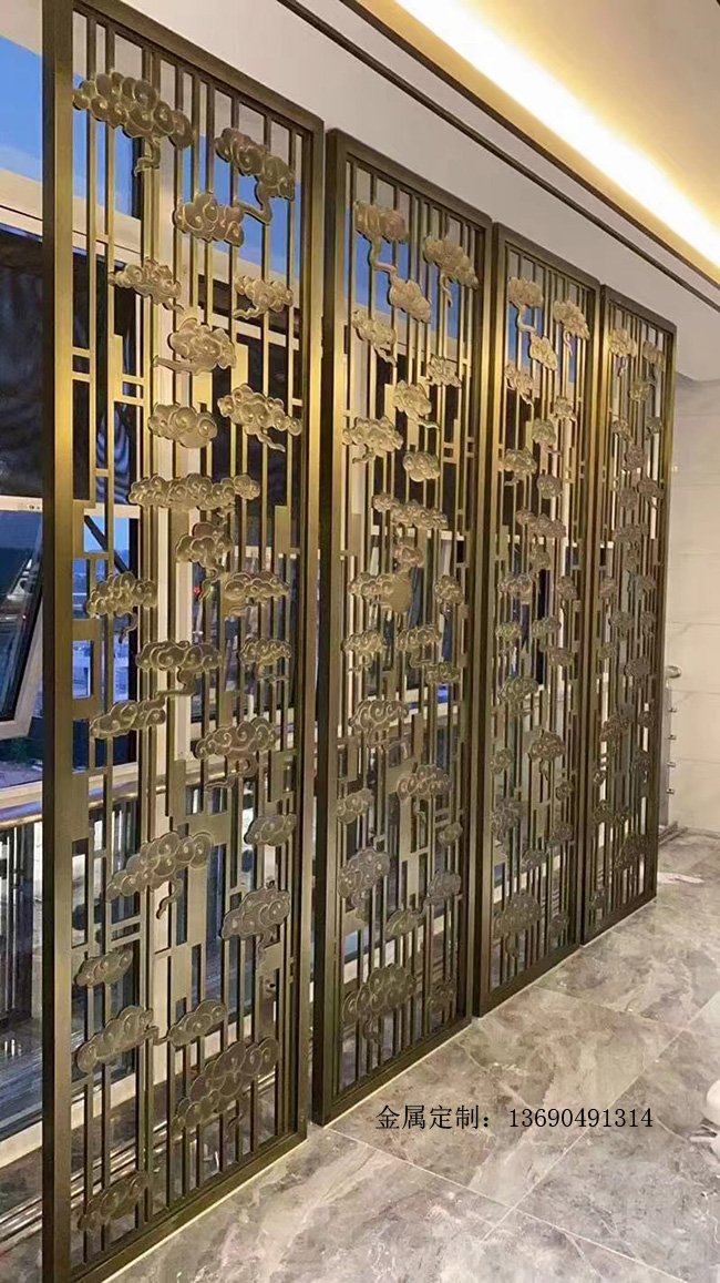 铝浮雕屏风铝雕花隔断的摆放位置范围很广,作用也很多。如摆放至玄关处可起到门前照壁作用,既能遮挡隐私,又能体现房屋美观。在门口做铝屏风铝雕花隔断时,要注意合理利用,要根据空间大小合理安排铝屏风铝雕花隔断的位置,进门正对好在1米外做铝屏风铝浮雕花隔断,