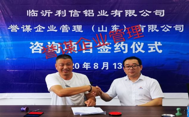 2020年8月13日,誉谋企业管理(山东)有限公司与临沂利信铝业有限公司举行签约合作仪式,双方代表完成了签约,标志着正式建立战略合作发展关系。在接下来的时间里双方就人力资源管理、薪酬体系管理、绩效体系管理、数据体系管理等多个工厂系统运行管理项目进行全面管理提升。对于本次合作项目,签约合作双方本着精诚合作、合力互赢的理念, 同携手打造精品企业,一起奋斗开创行业未来!