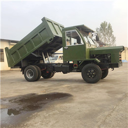 四轮四不像自卸翻斗车的发动机、底盘的构造和一般载重汽车相同。矿用四轮四不像自卸车的车厢分后向倾翻和侧向倾翻两种,通过操纵系统控制活塞杆运动,后向倾翻较普遍,推动活塞杆使车厢倾翻,少数双向倾翻。高压油经分配阀、油管进入举升液压缸,车厢前端有驾驶室安全防护板。