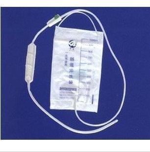 B型由袋体、吊耳式进液口、导管、止流夹、两通接头、肛门管组成。
