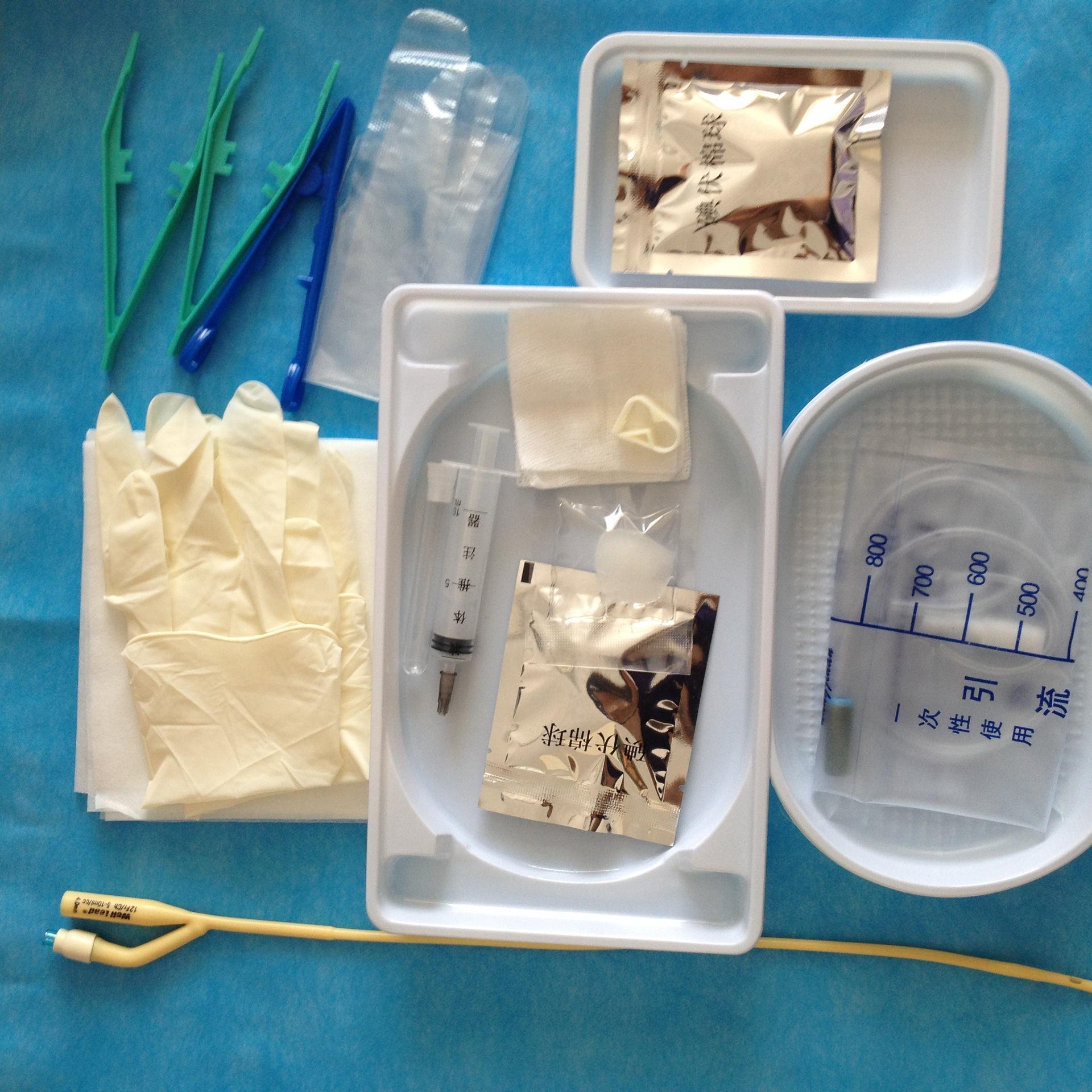 I型基本配置:一次性使用无菌导尿管(有囊,双腔、三 腔,Fr8、10、12.14.16、18.20、22).一次性使用引流袋、一次性医用孔巾、一次性使用治疗巾,可选配置医用脱脂纱布块、一次性使用医用橡胶检查手套、一次性使用灭菌橡胶外科手套、检查手套、一次性使用领子、医用碘伏棉球、医用石蜡棉球、医用棉球、一次性使用试管、一次性使用溶药注射器;Ⅱ型基本配置:一次性使用导尿管(无囊,单腔,Fr8、10.12、14、1618、20.22).一次性使用引流袋、一次性医用孔巾、一次性使用治疗巾,