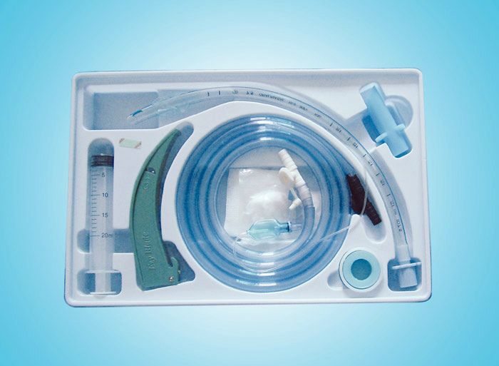 ロ咽通气道、一次性使用灭菌橡胶外科手套、喉镜片、戒指球一次性使用治疗巾、一次性使用手术洞中、一次性使用配药注射器、输液放带硅油棉球、导芯、托盘、包布组成;11型加强型由基本配置气管插管(加结构及组成强型)、脱脂纱布块和选配配置牙垫(气管插管围定器)、呼吸道用吸引