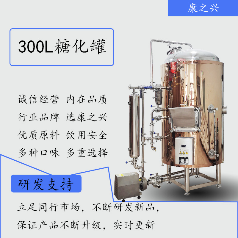 3、糖化罐功率大的话,会节省不少酿酒时间。通常一体式罐的麦汁产量在50-1000升,在这个基础上电加热可以满足升温的需求,节约了配置蒸汽加热系统的成本。