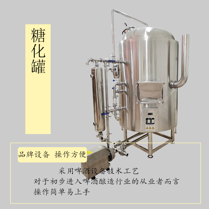 商用啤酒设备的容量有100L、200L、300L、500L、1000L、2000L、5000L,而市面上常用的是500L的啤酒设备。