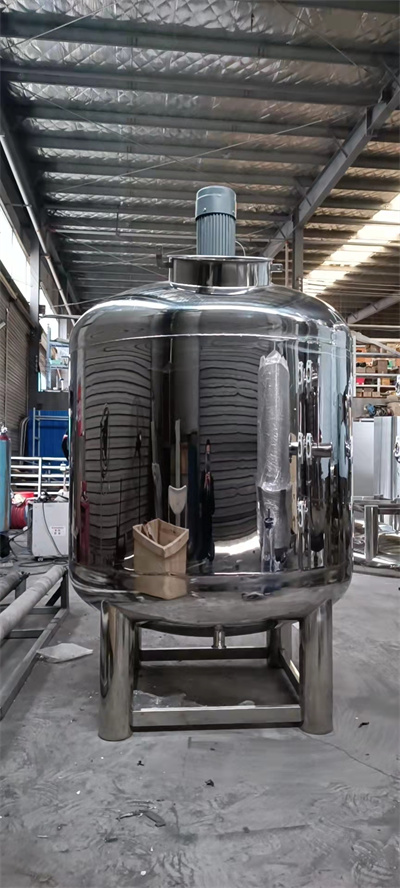 另外,还配有温度控制装置、测温孔、CIP自动旋转喷洗球、消泡器、挡板、空气分布器、温度传感器、视镜射灯、液位计等设备。不绣钢搅拌罐由搅拌罐体、上下端头、搅拌器、支承、传动装置、轴封装置等组成,还可根据工艺要求配置加热装置或冷却装置。不绣钢搅拌罐和搅拌罐盖可以是法兰或焊接的。根据工艺要求,搅拌罐罐盖可用于打开进料,排料,观察,温度测量,压力测量,蒸汽分馏,排气和其他工艺管孔。电动机放置在不绣钢搅拌器盖的上部,搅拌罐中的搅拌器由驱动轴驱动。轴封可以是各种形式,例如机械密封或填料,迷宫式密封等。搅拌器可以以各种形式配置,例如锚式,框式,斜叶桨式和三叶桨等。