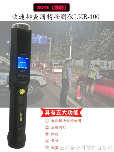 五合一BOTE(博特)LKR-100快速排查酒精检测仪具备酒精检测、红爆闪灯、照明、警哨、破窗(一体)