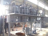 该设备全部恒温控制由一个脱水罐;一个脱胶罐;一个脱色罐和一个叶片过滤机组成,全部采用1公分钢板制造,用电或者燃烧机加热均可,5吨的设备24小时能处理轧制油、液压油、机械油、齿轮油、变压器油、毛油、减一线、减二线、减三线、布油、150、250、350等油品中的任何一种油20吨以上。出油率高达96%以上,颜色为水白色,永不氧化。