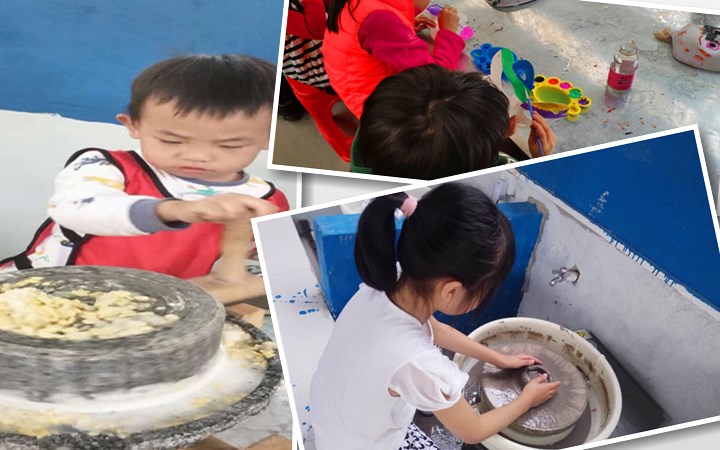 当小朋友们在野炊中体验抓鸡捉鱼,还有摘菜,洗菜这些后,接下来的炒菜就不用我们的小厨师了爸爸妈妈自己来,而小朋友们就让教练带着去到我们的DIY项目场地,这里的DIY还是很多的具体都有:手工陶艺、京剧脸谱、织布机、棉花糖等,这个项目把传统知识融入到了活动里让孩子学习。