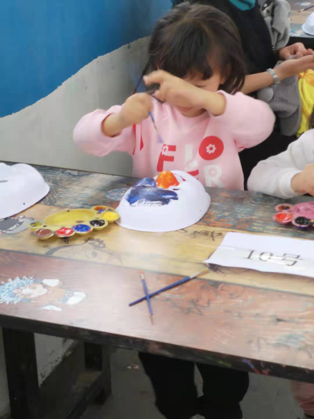 京剧脸谱从历史长河中渐渐传承下来,这就会引来人的好奇心,它那绘满菜色颜料的表面,仿佛活过来,这个都是要靠大家一点一滴的去慢慢琢磨出来,我们的小朋友们现在都开始拿起笔慢慢地给脸谱涂色了,在将画完整的脸谱晒干戴好在脸上,去体会每种角色的奥妙吧。