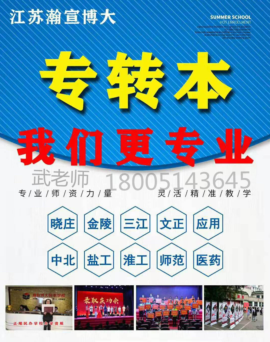 江苏瀚宣博大的教材都是教研团队集合多年的转本经验自主编写,针对性更强,学习更高效。班次多样化,单科班,考前班,冲刺班,协议班,充分考虑到每位学员的不同需求,并且还设有寒暑假集训营,高考复习模式,半封闭化管理,集中学习,让学员在短时间内学习更高效,提升更快,更多内容可以联系江苏瀚宣博大五年制专转本 武老师免费领取招生简章:180(微)0514(同)3645,fky186微。