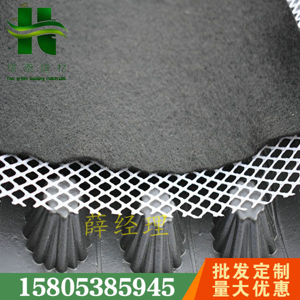 绿泰复合排水板铺设方便快捷、省时、省力、省人工、省成本,复合高分子防护排水异形片,统的排水方式使用砖石瓦块作为导滤层、使用较多的鹅卵石或碎石作为滤水层、将水排出。而用排水板取代鹅卵石滤水层来排水则省时、省力又节能、节省开支