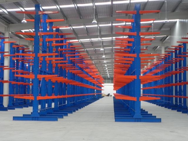 悬臂式货架货物存取由叉车、行车或人工进行。货架高度通常在2.5米以内,悬臂长度在1.5米以内,每臂载重通常在1000kg以内。此类货架多用于机械制造行业和建材超市等,加了搁板后,特别适合空间小,高度低的库房,管理方便,视野宽阔,与普通搁板式货架相比,利用率更高。