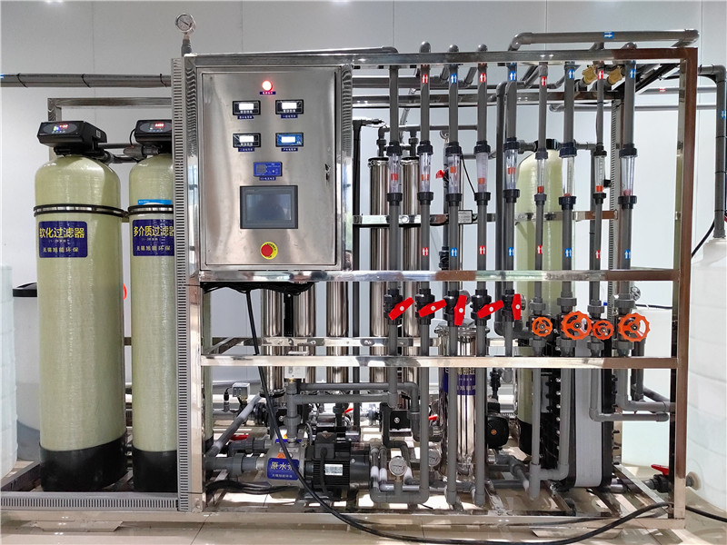 3、采用反渗透水处理设备与电去离子(EDI)设备进行搭配的的方式,这是一种制取超纯水的工艺,也是一种环保,经济,发展潜力巨大的超纯水制备工艺,其基本工艺流程为:原水→沙炭过滤器→精密过滤器→原水箱→反渗透设备→电去离子(EDI)→纯水箱→纯水泵→后置精密过滤器→用水点