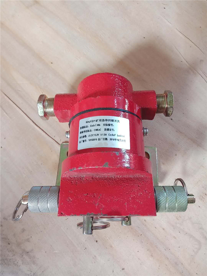产品说明:KHJ12/1急停闭锁开关主要用于对煤矿井下胶带运输机在运行状态下,遇到故障时能紧急停机,避免故障扩大。将急停闭锁开关接入主机相对位置,正常情况下,开关处于断开状态,当发生故障需紧急停车时,拨动开关使其处于闭合位置,主机和急停闭锁开关指示灯亮,主机执行继电器释放,实现急停保护,同时发出语言报警信号。