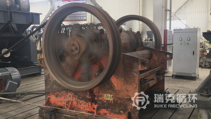 该台300 ×1300颚式破碎机从集团公司购买之后在河南某地从事青石的破碎工作,在使用产量和性能都比较稳定,由于企业生产工艺改变,这台颚破满足不了生产的需要,与我公司联系置换600×900颚破,根据客户描述使用只更换了易损件,除此之外没有其它故障,我公司调取总公司售后记录在之后,到现场对设备进行检查,除了外观有明显呢的锈迹以外,其它部位保存比较良好,设备运到公司之后将设备清洗、拆机、检查,依据检查结果下发检修方方案,完成检修之后在我公司司机平台上进行试机运行,试机中该设备性能稳定,符合出厂标准。