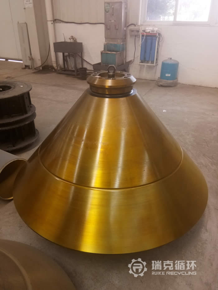 洛阳瑞克循环利用科技有限公司采用将变位机加自动焊接的方法,将动锥外锥面及内孔均匀补焊。然后整体退火处理消除焊接应力,用数控立车重新加工。各部尺寸检验合格后交付用户使用。该零部件通过洛阳瑞克,用再制造工艺和技术,使维修后的零件基本恢复到原有的尺寸。
