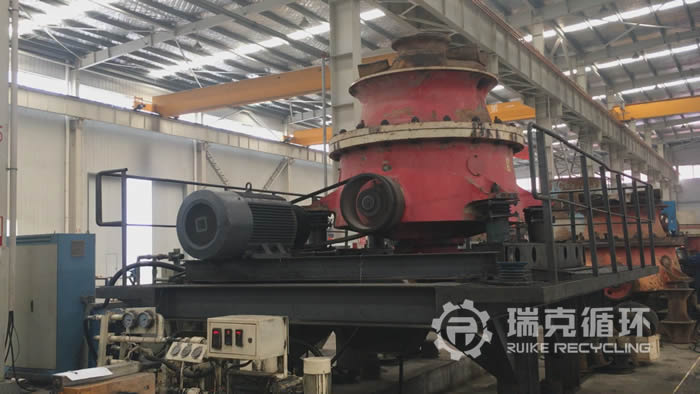 该台GP500圆锥破碎机是我公司在四川回收的,设备在回收之前从事玄武岩的破碎工作,由于和当地一个高铁项目合作期满,将设备转让给我公司。我公司接到客户电话进行沟通之后,派技术人员到现场查看设备,在现场没有检查出较为严重的损坏之后将设备运回公司。在我公司车间先对设备进行之后,然后把设备整体拆开,用测量仪器检查零部件的情况,根据实际检查结果制定检修方案,完成检修以后在试机平台上进行数个小时的试机,设备在试机中性能比较稳定,符合相关技术要求。