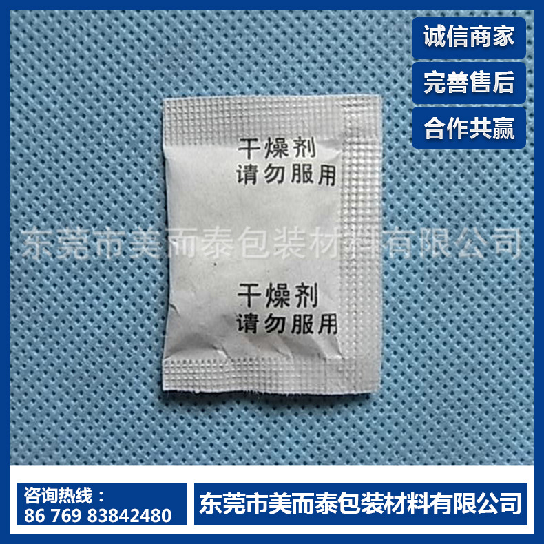 包装用硅胶干燥剂有多种包装规格,可方便地置于各类物品(如仪器仪表电子产品、皮革、鞋、服装、食品、和家用电器等)包装内,以防止物品受潮霉变或锈蚀。 型号: 细孔型 B型