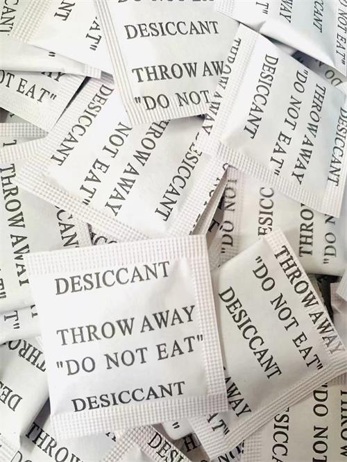 硅胶干燥剂-主要成分是二氧化硅,由矿物加工而成粒状或珠状。作为干燥剂,它的微孔结构(平均为2A。)对水分子具有良好的亲和力。硅胶的吸湿环境为室温(20~32)、高湿(60~90%),它能使环境的相对湿度降低至40%左右。