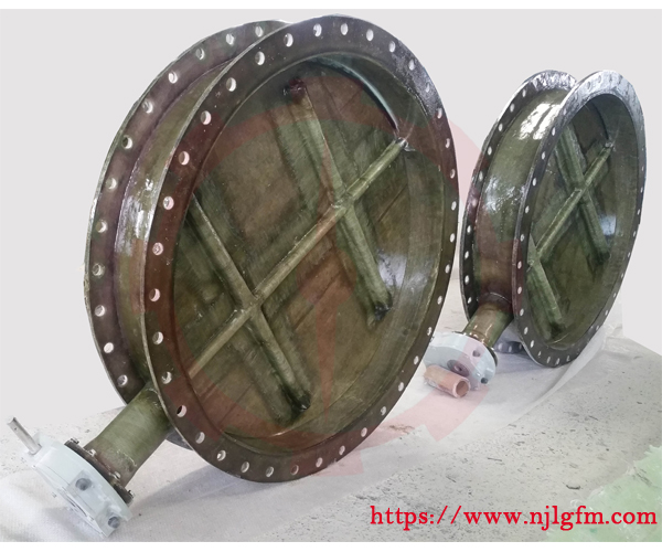 玻璃钢蝶阀把主要易腐蚀部件如阀体、阀板等设计为玻璃钢材料,玻璃钢部件所使用的纤维、纤维织物与树脂类型由蝶阀的工作条件确定。玻璃钢阀体的主体形状为直管状,它的结构特点是以一段玻璃钢直管为基础,然后再增加法兰、密封环制造而成。该种蝶阀具有耐腐蚀能力强、成本低廉、制造工艺简单灵活等特点。