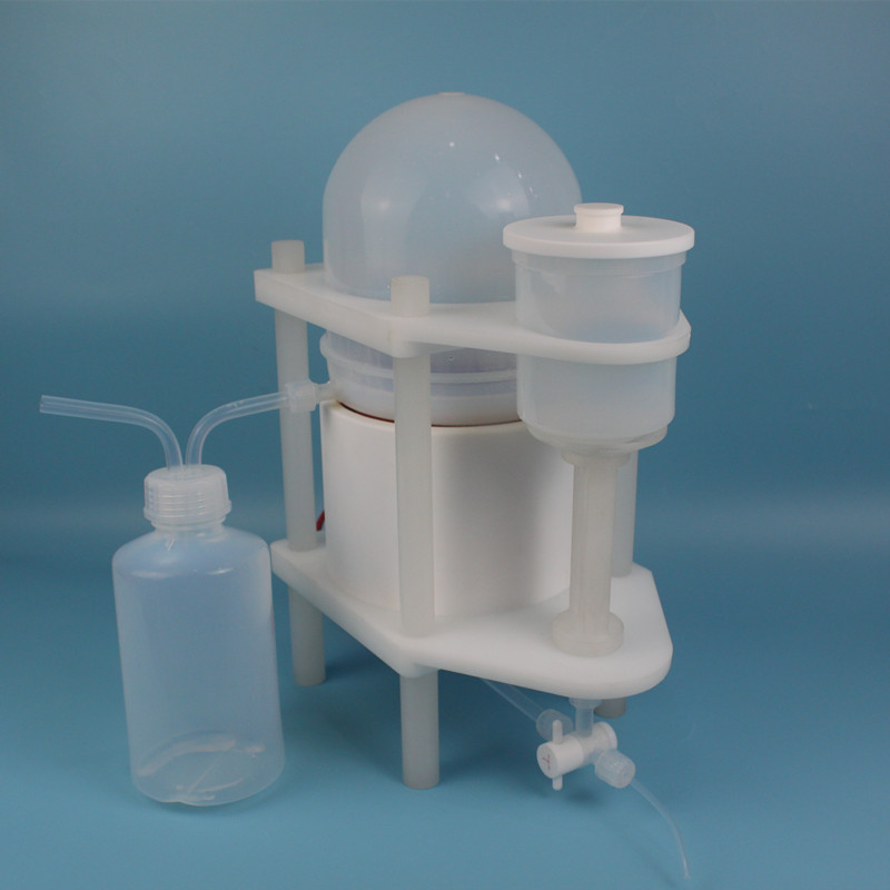 可以满足ICP、ICP-MS低的检测限需要及苛刻的分析应用中提供实验室级超纯酸,设备主体由高纯度的PTFE和PFA制造而成,与酸试剂接触容器采用进口PFA材质,本底更低,无腐蚀,无污染,可以处理HNO3、HCL、HF等实验室的常用酸。实验证明将金属杂质含量约10PPB的酸经过一次蒸馏后,金属杂质含量可以降低到0.01PPB左右。若对酸要求更高,可增加提纯次数。广泛用于地质、光伏、质检等行业的痕量、超痕量分析。