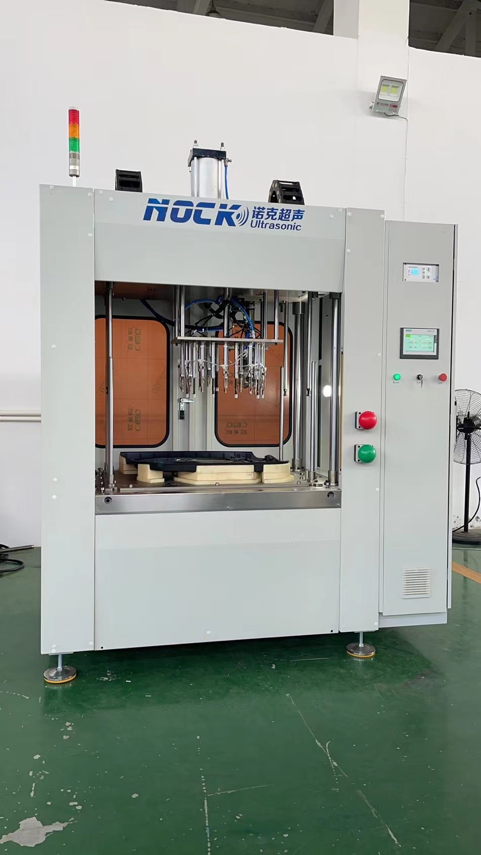 汽车门板内护板焊接机|内护板焊接机|汽车门板热铆机|车门内护板焊接机|车门内饰板铆接机|内护板于隔音棉焊接|汽车隔音棉焊接机,车门内饰件安装就位在门骨架上,夹紧放置在模具上,铆接机一次动作同时完成不同平面上的铆接点的铆固,从而保证整体结构牢固,有效避免变形造成的影响,消除了内部应力集中。无锡诺克超声科技有限公司(刘小姐18915321396,13358106655 http://www.nocksonic.com) 是从事塑料热铆接设备研发制造的专业化公司,拥有多项发明专利,采用最先进的塑料热铆接技术,利用特制的铆头可以实现塑料铆柱的齐平铆接、半球铆接、埋头铆接(沉头铆接)、圆弧翻边铆接、肋条状铆接、折边镶嵌包覆等,与加工工件进行点接触,以全新的理念优化设计,将塑料件与金属件或其它不可焊接材质的组件铆接装配成一体,铆接面光洁度好,成形速度快,不易龟裂脆化、美观、牢固,减化了生产工艺、降低材料消耗、极大地提高产品质量、可靠性和生产效率,有效地延长使用寿命,具有工艺先进、结构合理、无震动、无噪音、无污染、加工质量高等优点,广泛适用于宇航军工,电子电器,仪器仪表,微动开关阀门,汽车配件,家用电器,五金等行业生产与装配,确保产品的高性能和低成本,即使在极其恶劣的自然环境和剧烈振动的情况下,依然可以长期安全稳定可靠地使用。