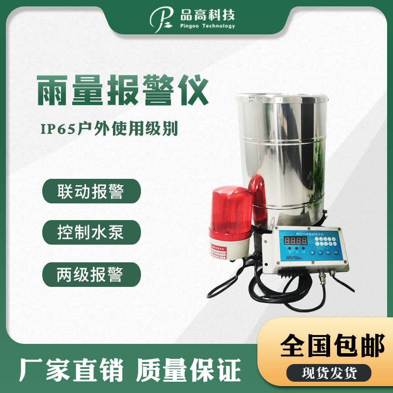 过雨水接收筒存储雨量,其液位值超过预设的阈值时进行声光报警。