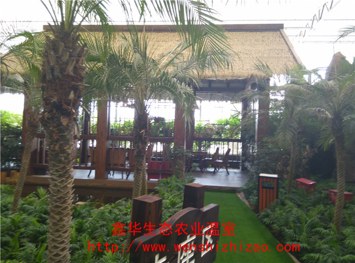 “生态餐厅”是在设施农业的基础上发展而来的,它继承了温室设计的理念,并把农业生产与饮食文化有机的联系起来,形成了一个全新的概念,绿色生态餐厅完全按照标准温室的结构建造,多采用文洛式,覆盖材料多为PC板或者玻璃,结构保温性能好,整齐规范,室内各个空间温度均匀,有利于景观植物的生长,鉴于餐饮布局的需要,在文洛温室结构的基础上,可进行局部调整,该温室建造成本相对较低,温室升降温能耗低,节约后期运行费用。绿色生态餐厅中厅采用大型钢结构形式,跨度大,高度高、可植入高大树木,设置亭台,造景时有更大的发挥空间,使景色更加逼真,中厅周围设置其他配套连栋温室,大部分餐饮设置于其中,降低大大的造价和后期维护费用,同时保证了充足的活动空间,美景美食交相辉映、相得益彰