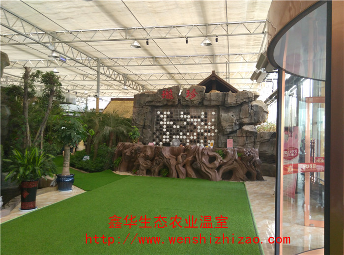 “生态餐厅”是在设施农业的基础上发展而来的,它继承了温室设计的理念,并把农业生产与饮食文化有机的联系起来,形成了一个全新的概念,绿色生态餐厅完全按照标准温室的结构建造,多采用文洛式,覆盖材料多为PC板或者玻璃,结构保温性能好,整齐规范,室内各个空间温度均匀,有利于景观植物的生长,鉴于餐饮布局的需要,在文洛温室结构的基础上,可进行局部调整,该温室建造成本相对较低,温室升降温能耗低,节约后期运行费用。绿色生态餐厅中厅采用大型钢结构形式,跨度大,高度高、可植入高大树木,设置亭台,造景时有更大的发挥空间,使景色更加逼真,中厅周围设置其他配套连栋温室,大部分餐饮设置于其中,降低大大的造价和后期维护费用,同时保证了充足的活动空间,美景美食交相辉映、相得益彰。