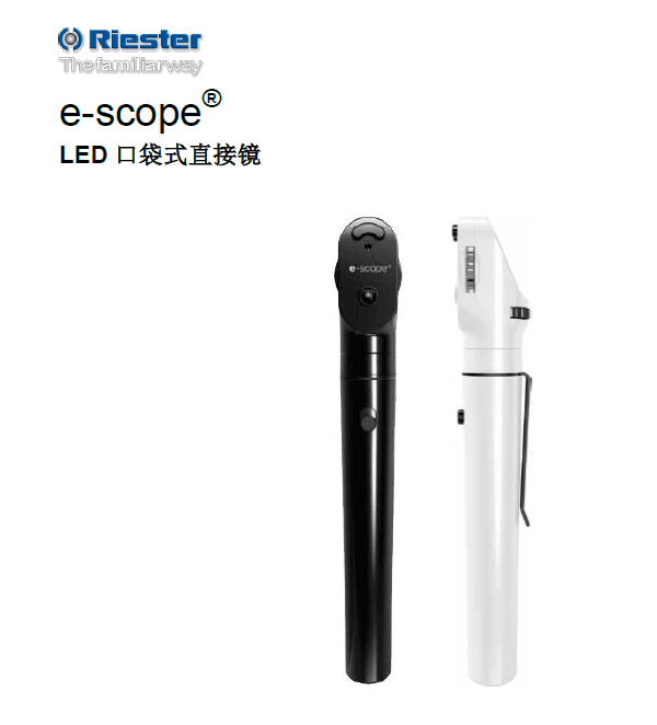 德国里斯特(Riester )为五官科检查提供了一流的便携式检查仪器。医生和医学院的学生都可使用e-scope检眼镜。