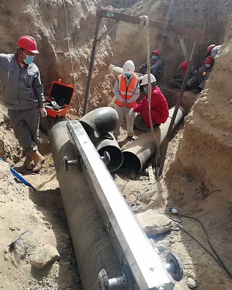 该方法使内防腐补口层与主防腐层相容性好,进步了防腐补口层质量和防腐机能,整条管线的使用寿命长。弯头上端及直管一真个阶台内侧分别卡套有旋转法兰,弯头及直管的阶台镶嵌在旋转法兰及弯头法兰的凹槽内,旋转法兰通过螺栓与弯头上的法兰相连。
