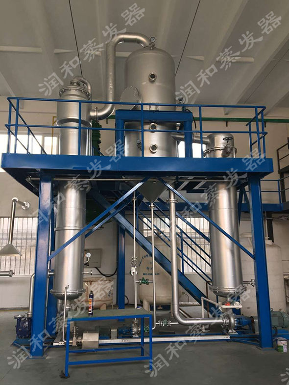 设备由各效蒸发器、各效分离器、冷凝器、热压泵、真空及排水系统、各效料液输送泵、操作平台、电器仪表控制柜及阀门、管路等系统组成.