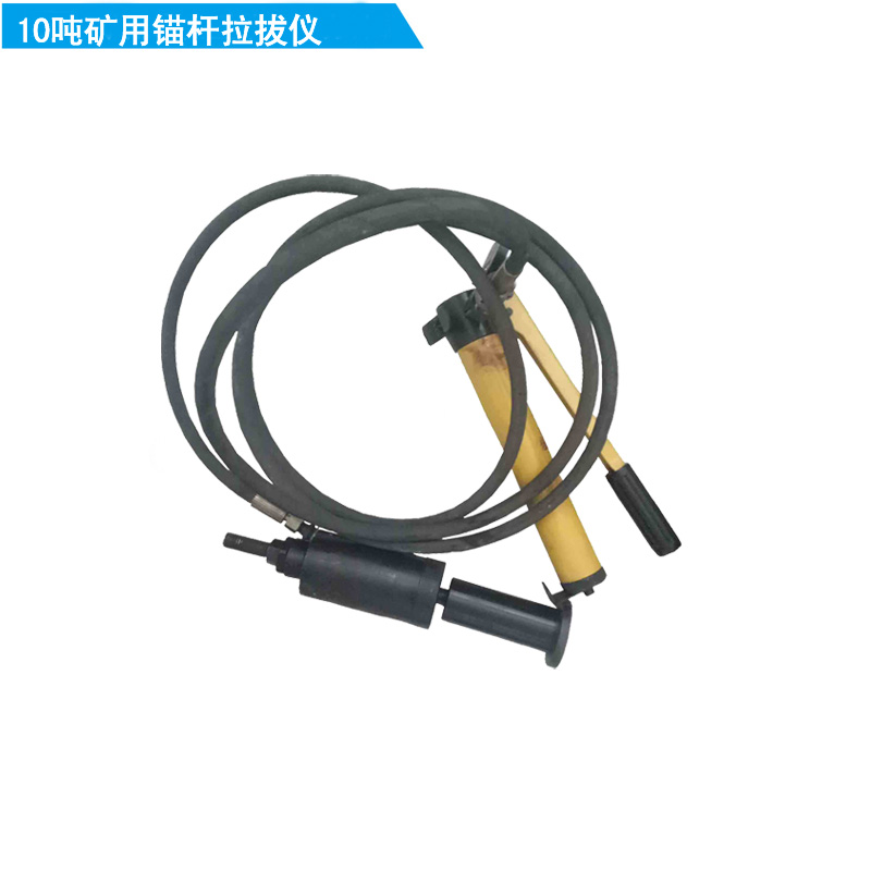 MSL-100锚杆拉力计|锚杆拉拔仪设置于矿用巷道内,包括千斤顶和油泵,并与巷道内的锚杆位置对应,所述锚杆拉力计设有高压油管,千斤顶和油泵分别设有油管接头,油泵的油管接头设有压力表,油泵将油挤压通过高压油管输送至千斤顶内,油管接头的压力表能够感应回油压力,并显示具体压力值,从而检测出锚杆锚固力。