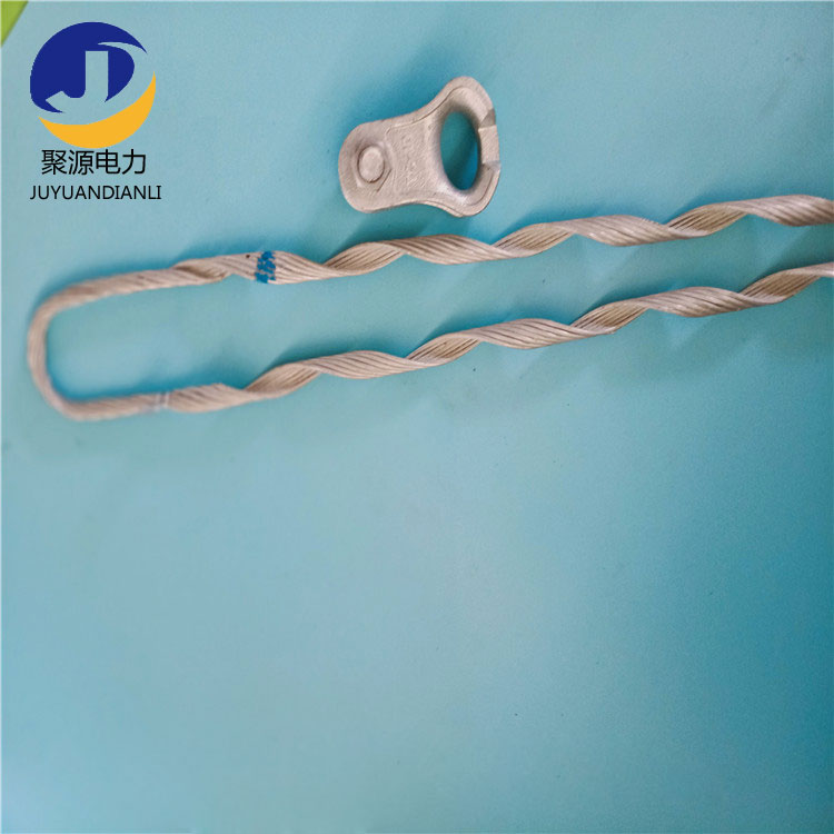 线夹预绞丝是用热镀锌钢丝或铝包钢丝预制成螺旋状空管,预绞丝按要求的根数粘合成束。螺旋管内表粘有可增加导线与线夹摩擦力的金刚砂,线夹预弯成非绞合环与绞合环二种U形环。