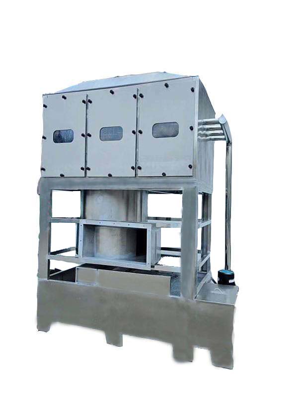 产品采用流体力学技术,避免水泵及喷头的堵塞,大大提高生产效率,其中水池的水可循环使用,避免产生二次污染造成的困扰,更节约了水资源;气旋塔内安装有若干个“圆形旋流桶”和高效除雾板。旋流桶内放有实心填料球,上层的除雾板用来净化水雾,达到脱水雾的目的,含尘气体在塔内旋流上升、并在各板上与由塔顶进入的液体旋流接触,完成除尘任务;通过离心力的作用,废气中的大颗粒沉入水池, 之后由人工捞出清理机壳,这样气体得到净化,达标排放,同时气旋塔内的水可以继续循环使用。