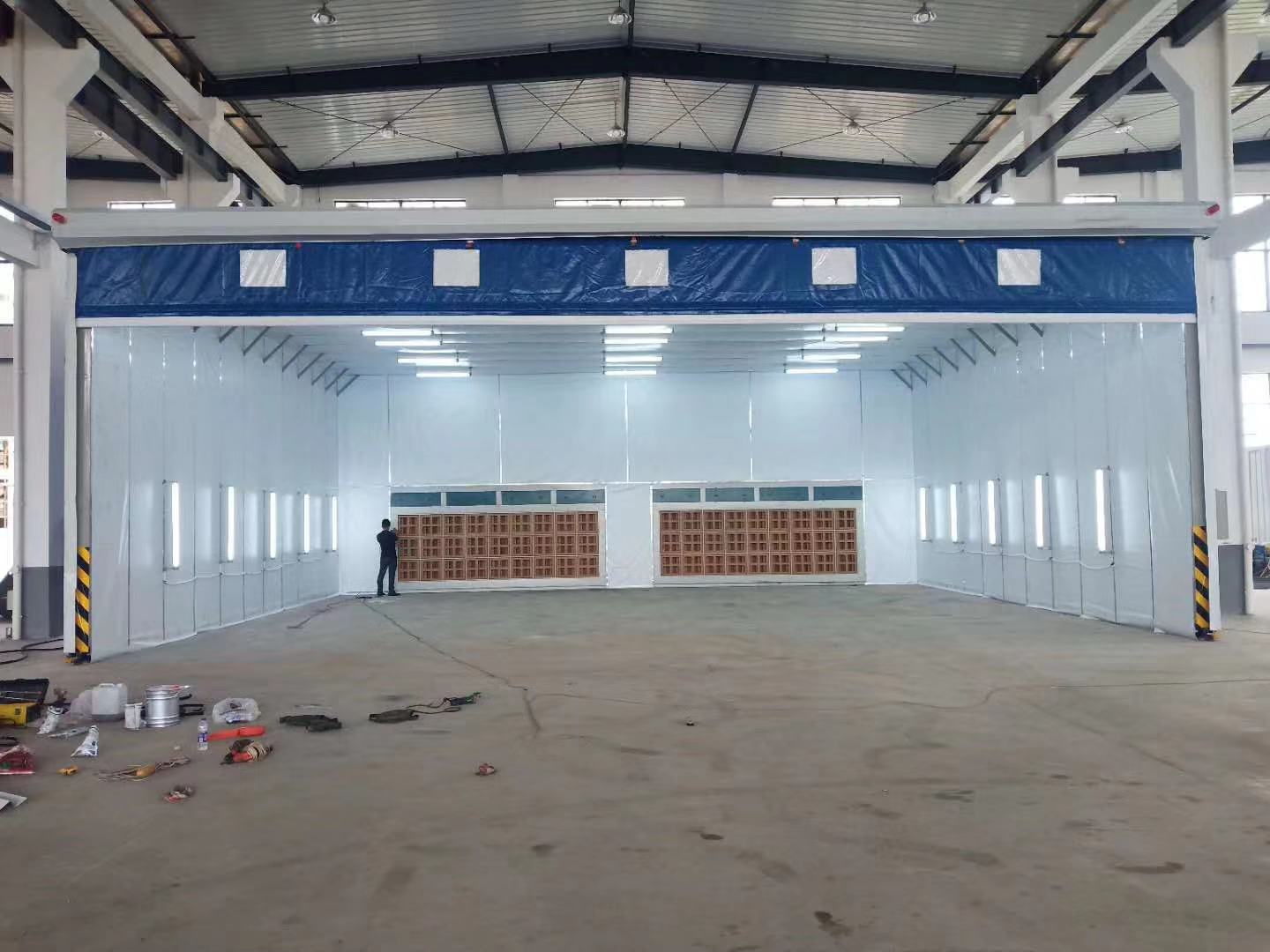 4.移动伸缩式喷漆房整体为框架传动结构,每组框架间均由阻燃PVC布密封连接,安装快捷、外形美观。