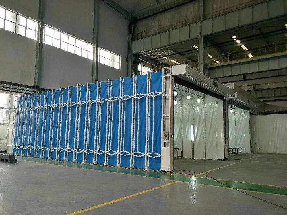 伸缩移动喷漆房是专门为解决较大型工件移动运送困难而研制的实用型环保产品,喷漆区可根据产量大小,任意调整,充分利用生产场地和操作空间!使用伸缩移动喷漆房在生产工艺上大大简化了不断用车间天车吊运大型笨重工件来回周转的工艺流程;而无需专门的运输工具;展开长度可以在任意位置!伸缩移动喷漆房是一种可以在需要使用时自动展开形成封闭或半封闭的作业间,不需要实用时收缩合拢到一处的特殊房体装置设计理念和技术的集成,使其应用范围非常之广。